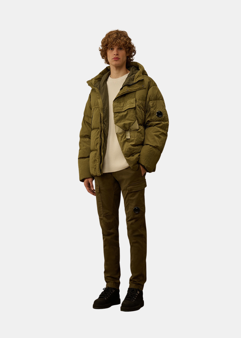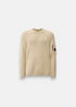 Pull C.P. Company en tricot côtelé anglais, mélange coton stretch et nylon. Confort et flexibilité, orné de la lentille signature sur la manche.