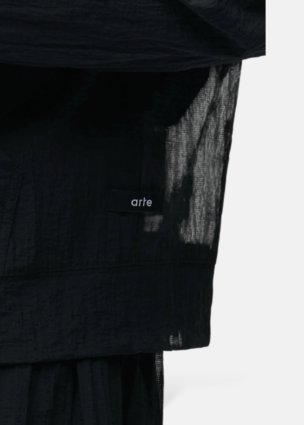 Conçue pour la saison été 2026, cette veste Arte Antwerp est confectionnée dans un tissu mesh léger et respirant, garantissant un confort optimal lors des journées chaudes. Sa texture légèrement transparente et sa coupe épurée en font une pièce de superposition moderne. Dotée d'une capuche ajustable et de finitions soignées, elle allie parfaitement technicité et style urbain.