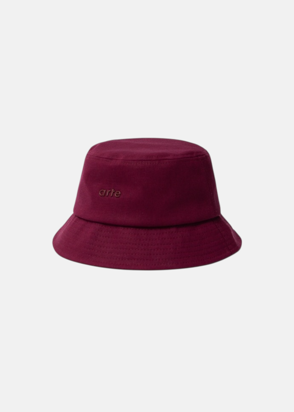 Issu de la collection Spring/Summer 2026, ce bucket hat Arte Antwerp coloris rouge bordeaux combine la robustesse du coton et la légèreté noble du lin. Il présente un logo "arte" brodé ton sur ton pour une finition minimaliste et sophistiquée.