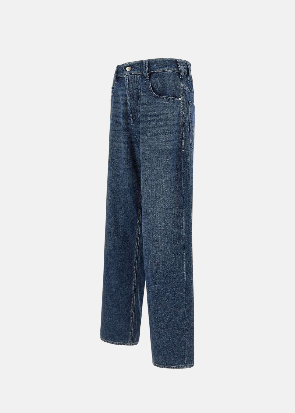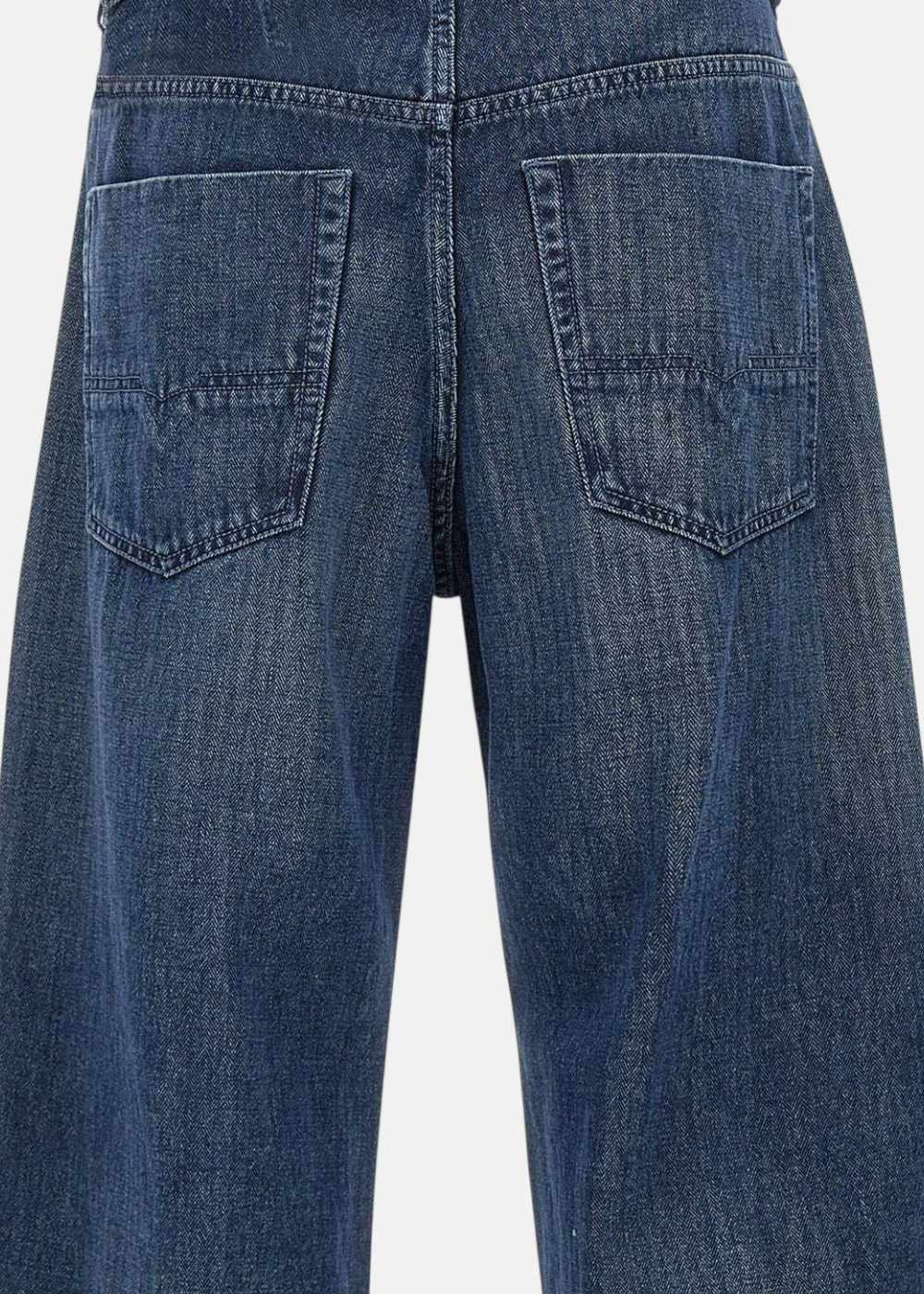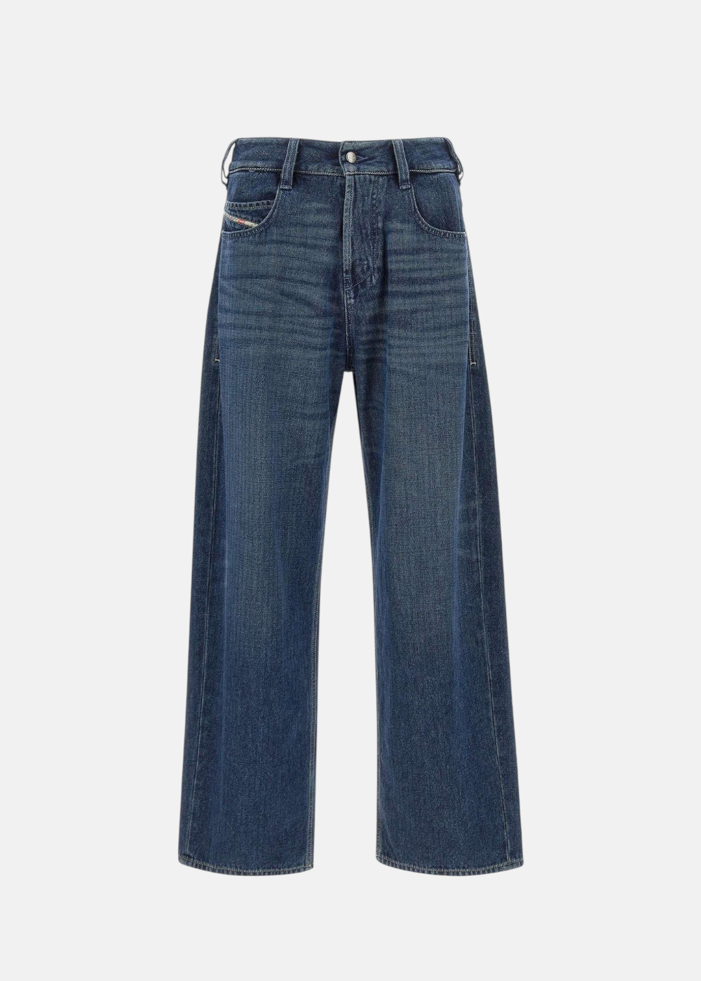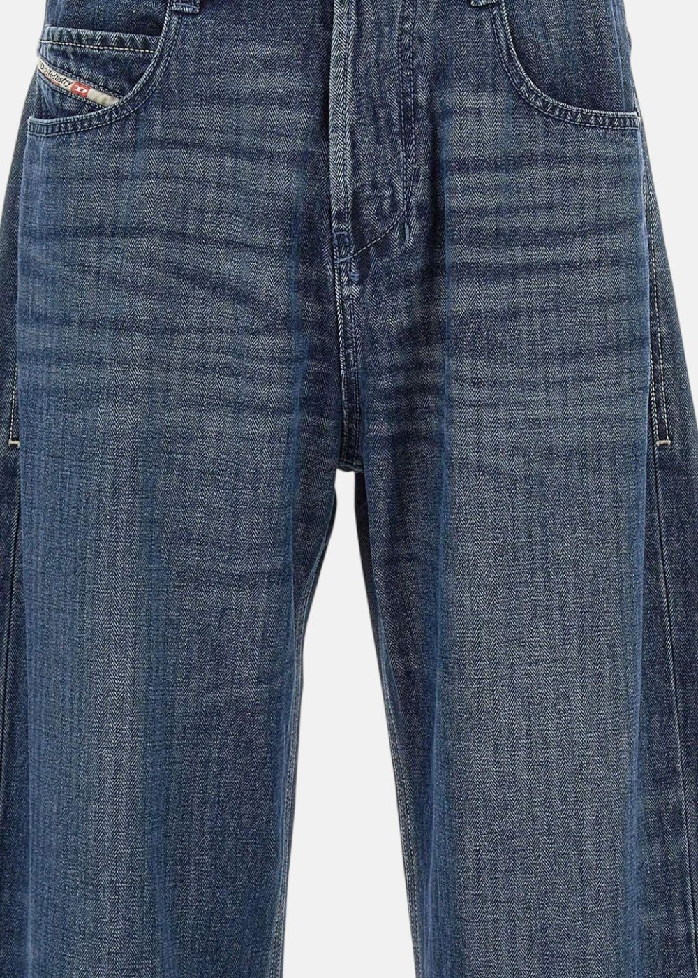 Jean Diesel 1997 D-Enim pour homme, coupe large et décontractée. Denim bleu foncé 100% coton non extensible, taille moyenne et détails signature Diesel.