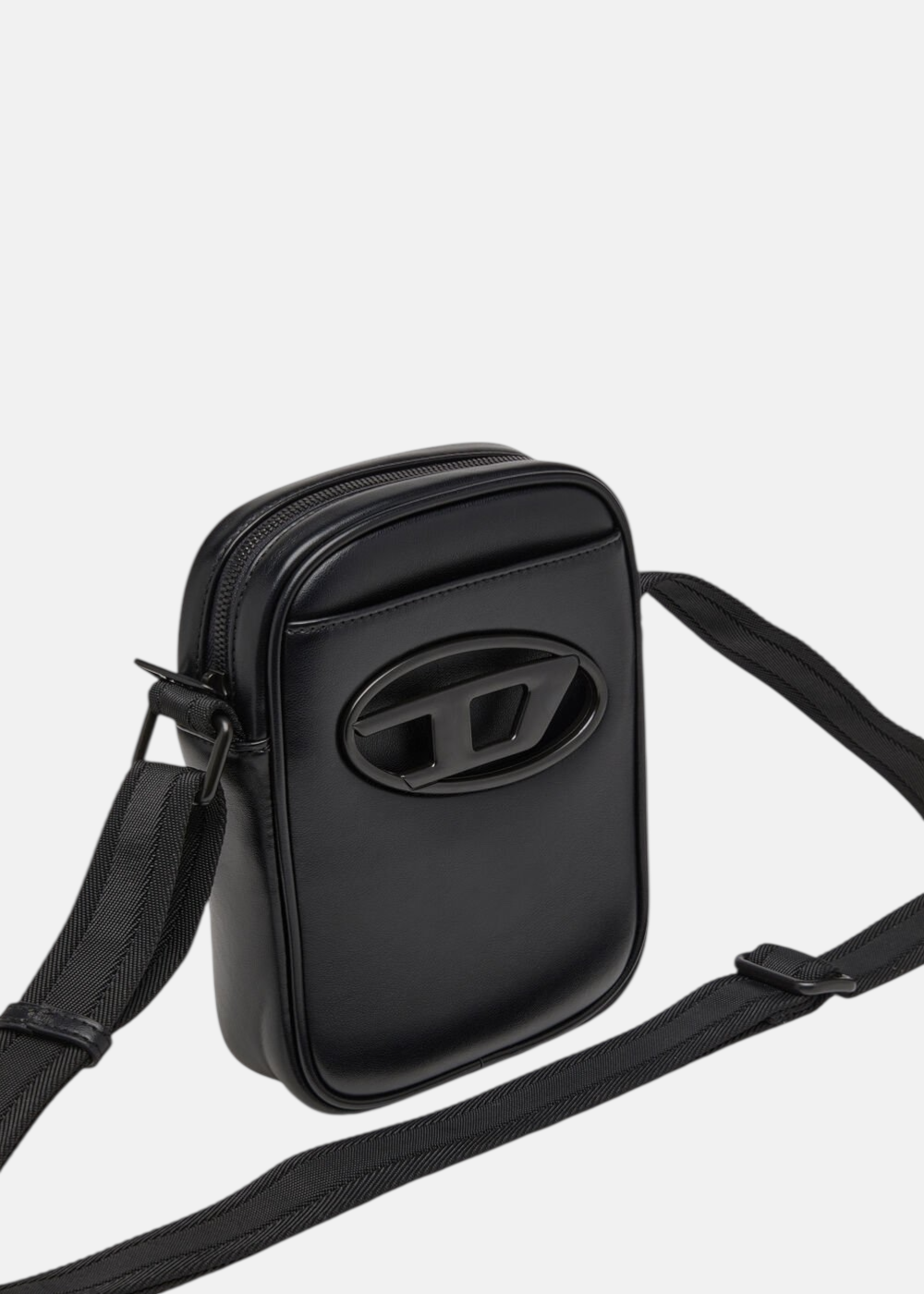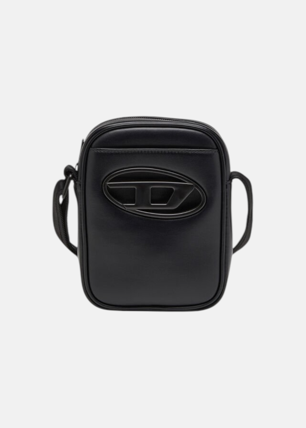 La sacoche Diesel affiche un format compact, une plaque Oval D ton sur ton et une large sangle réglable.