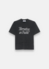 Le Relax Options d’Études est un t-shirt oversize gris délavé, première collection Été 2026, avec un imprimé sur le devant et un col rond. Coupe ample et look wash déjà porté.